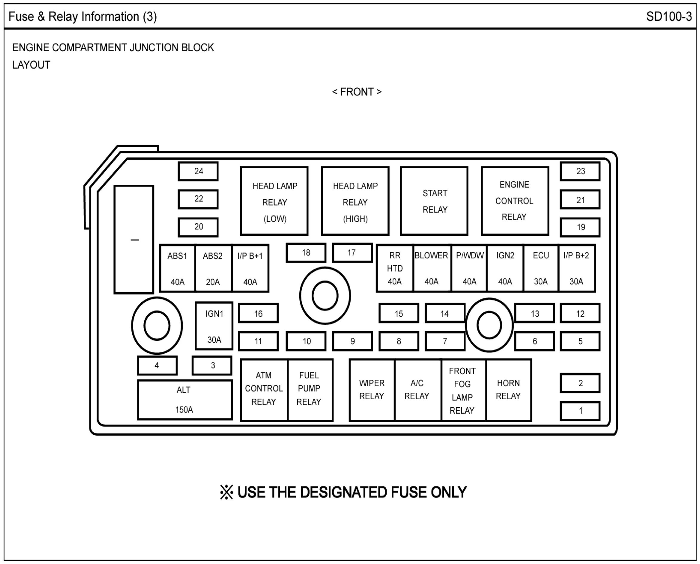 ICM Relay Box Layout / Front Fuse Box Layout: