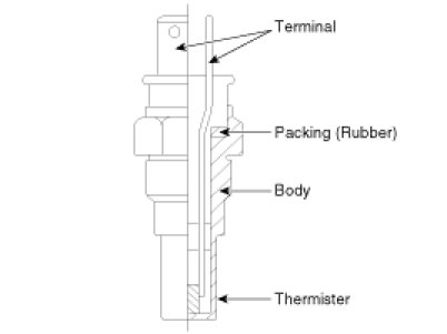 Engine Coolant Temperature Sensor (ECTS) is located in the engine coolant passage of the cylinder head for detecting the engine coolant temperature. The ECTS uses a thermistor whose resistance changes with the temperature. The electrical resistance of the ECTS decreases as the temperature increases, and increases as the temperature decreases. The reference 5 V in the PCM is supplied to the ECTS via a resistor in the PCM.That is, the resistor in the PCM and the thermistor in the ECTS are connected in series. When the resistance value of the thermistor in the ECTS changes according to the engine coolant temperature, the output voltage also changes. During cold engine operation the PCM increases the fuel injection duration and controls the ignition timing using the information of engine coolant temperature to avoid engine stalling and improve drivability.