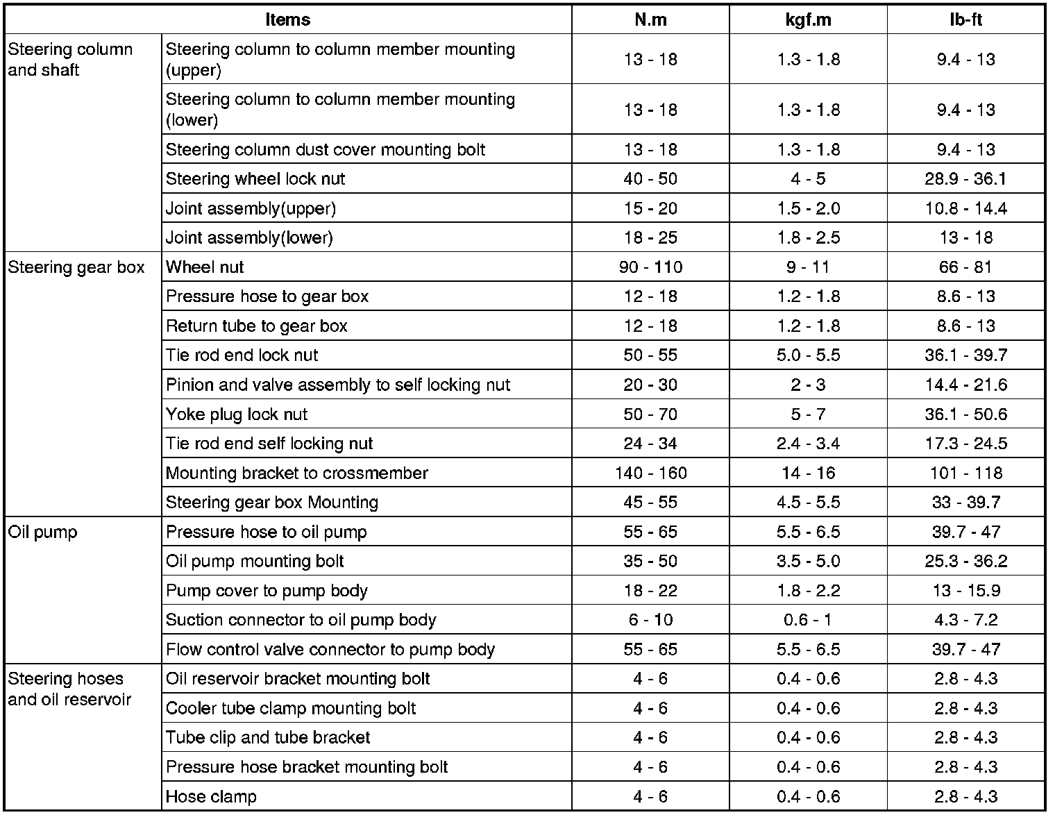 Tightening Torques