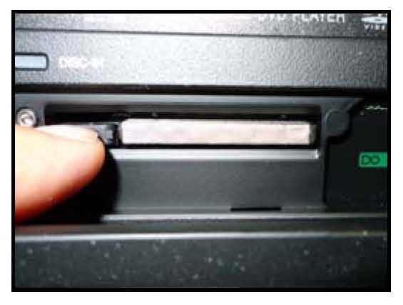 3. With the door now removed, push in the card release button as shown and remove card.