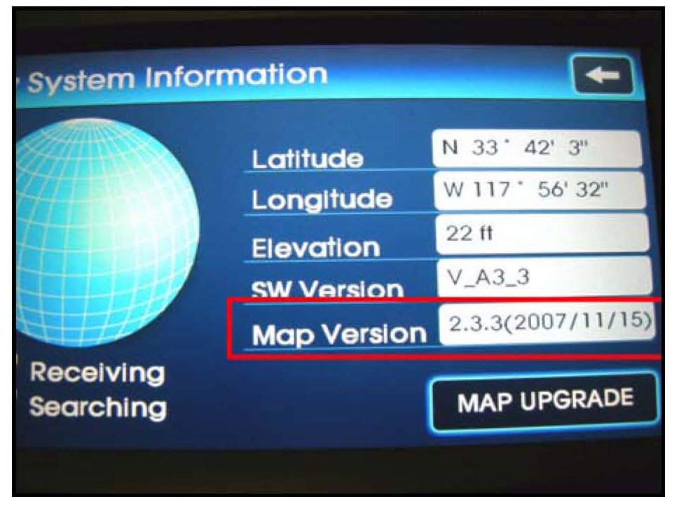 Check the Map Version on the screen.