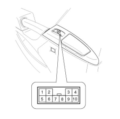 Home >> Hyundai >> 2009 >> Azera V6-3.3L >> Repair and Diagnosis >> Windows and Glass >> Windows >> Power Window Switch >> Testing and Inspection