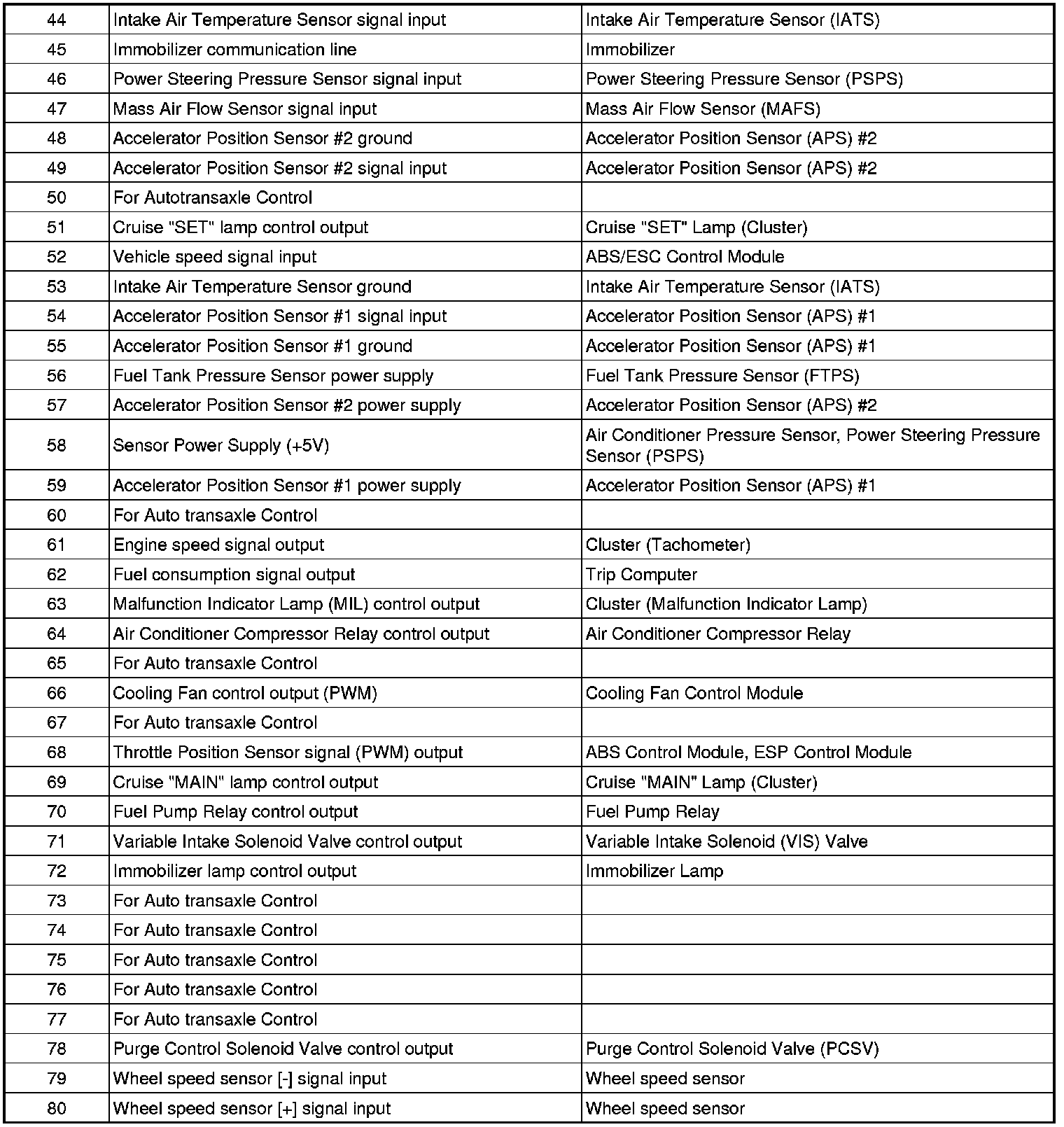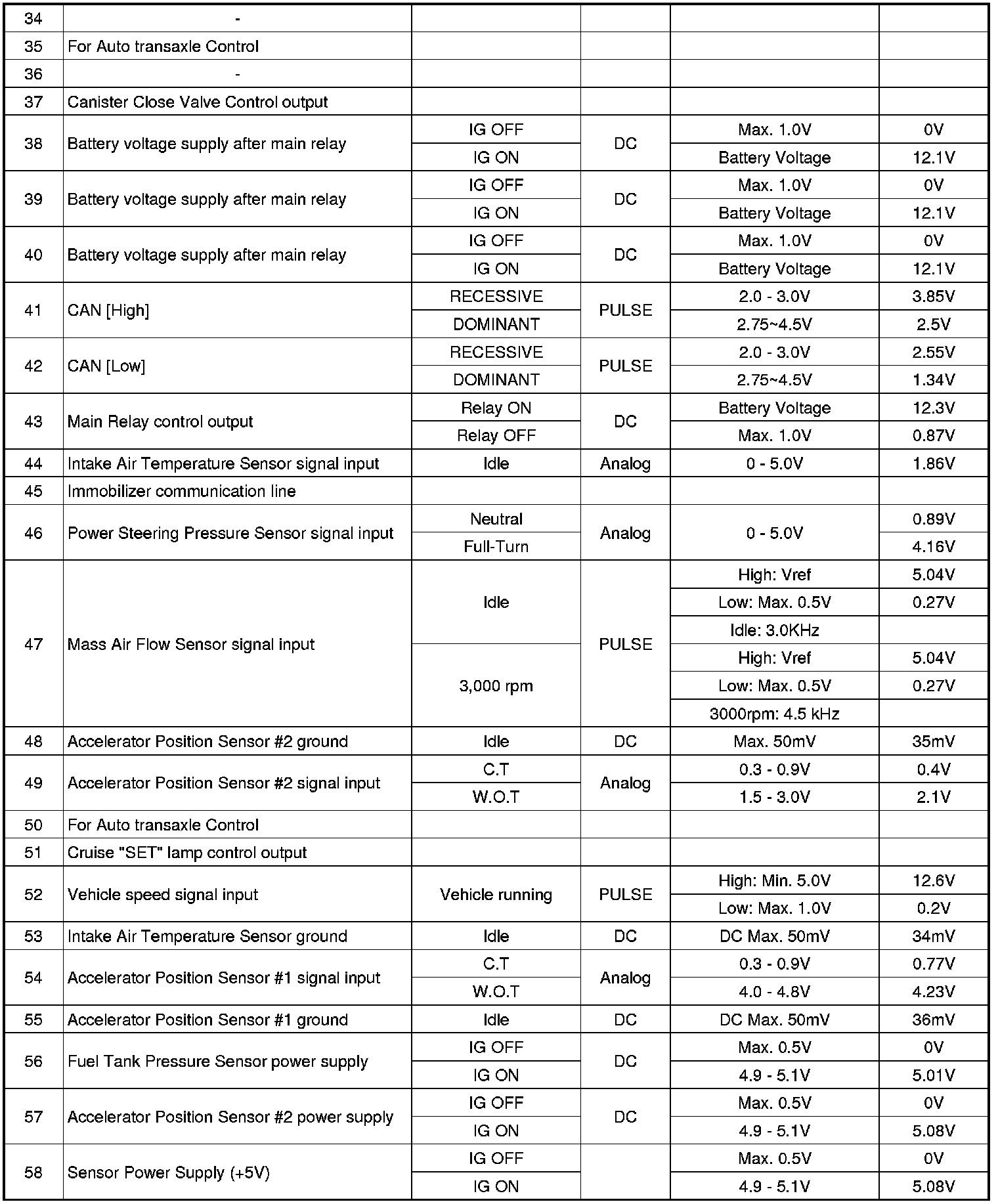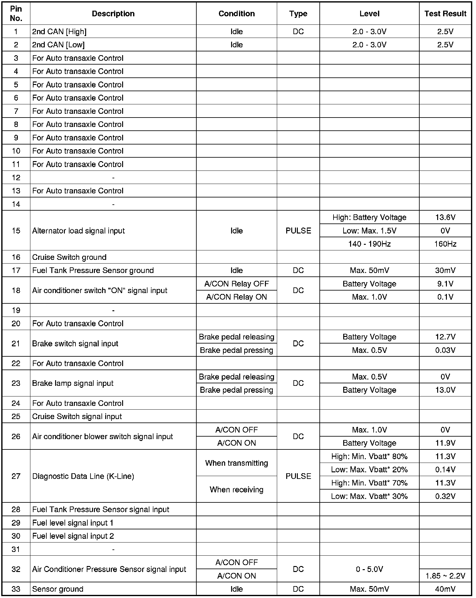 3. PCM Terminal Input/output Signal