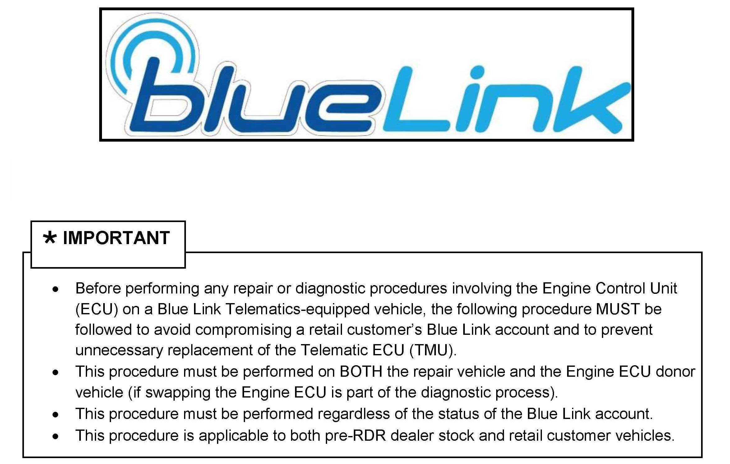 This bulletin describes the following procedure for vehicles equipped with Blue Link: