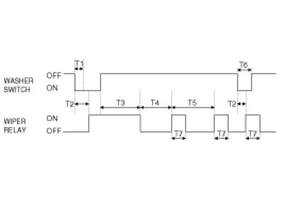 (1) Under IGN2 SW ON, WIPER RELAY is turned ON after T2 from WASHER SW ON if WASHER SW is ON for T1 and WIPER RELAY is turned OFF after T3.