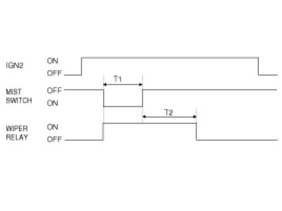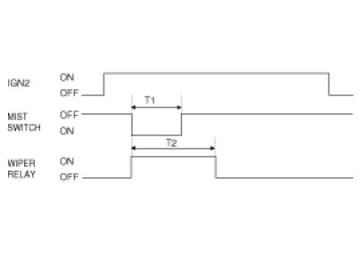 (1) Under IGN2 SW ON, WIPER RELAY is turned ON directly from MIST SW ON if MIST SW is ON for T1 and WIPER RELAY is turned OFF after T2.
