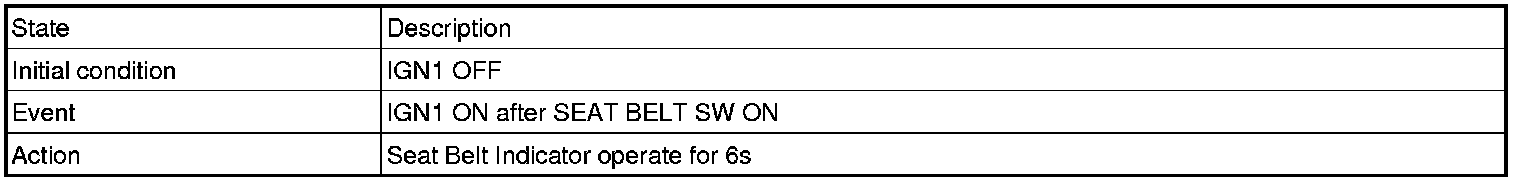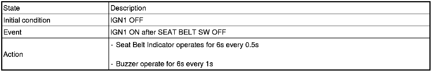1. Seat belt indicator and BUZZER every 1sec for 6sec when IGN is ON.