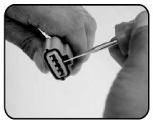 - Flat tip type: Removal of single locking male/female terminal from the connector.