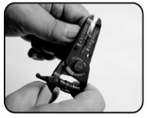 2. Choose the correct clamping slot for the wire and strip off the wire coat.