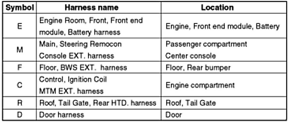 * It depends on vehicles, it is necessary to check the harness name symbol on the harness layouts for detailed symbol.