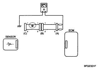 - Continuity Check Method (with Chassis Ground)NOTE: Lightly shake the wire harness above and below, or from side to side when measuring the resistance.