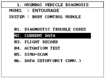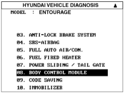 2. To diagnose the BCM function, select the menu of model and body control module.