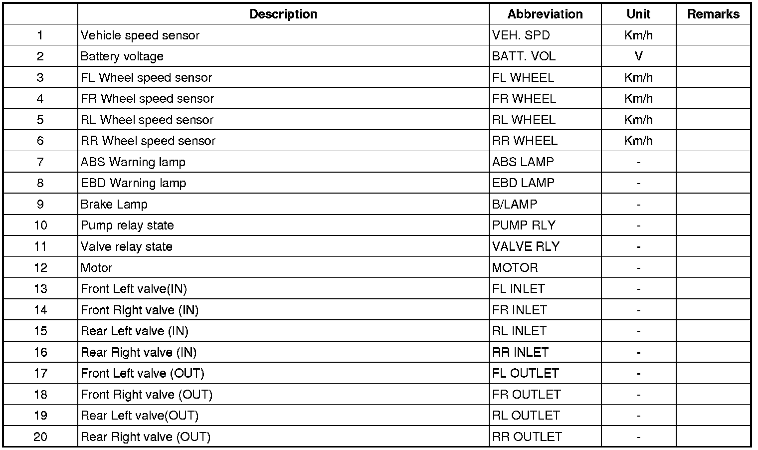 Sensor Output On Scan Tool(ABS)