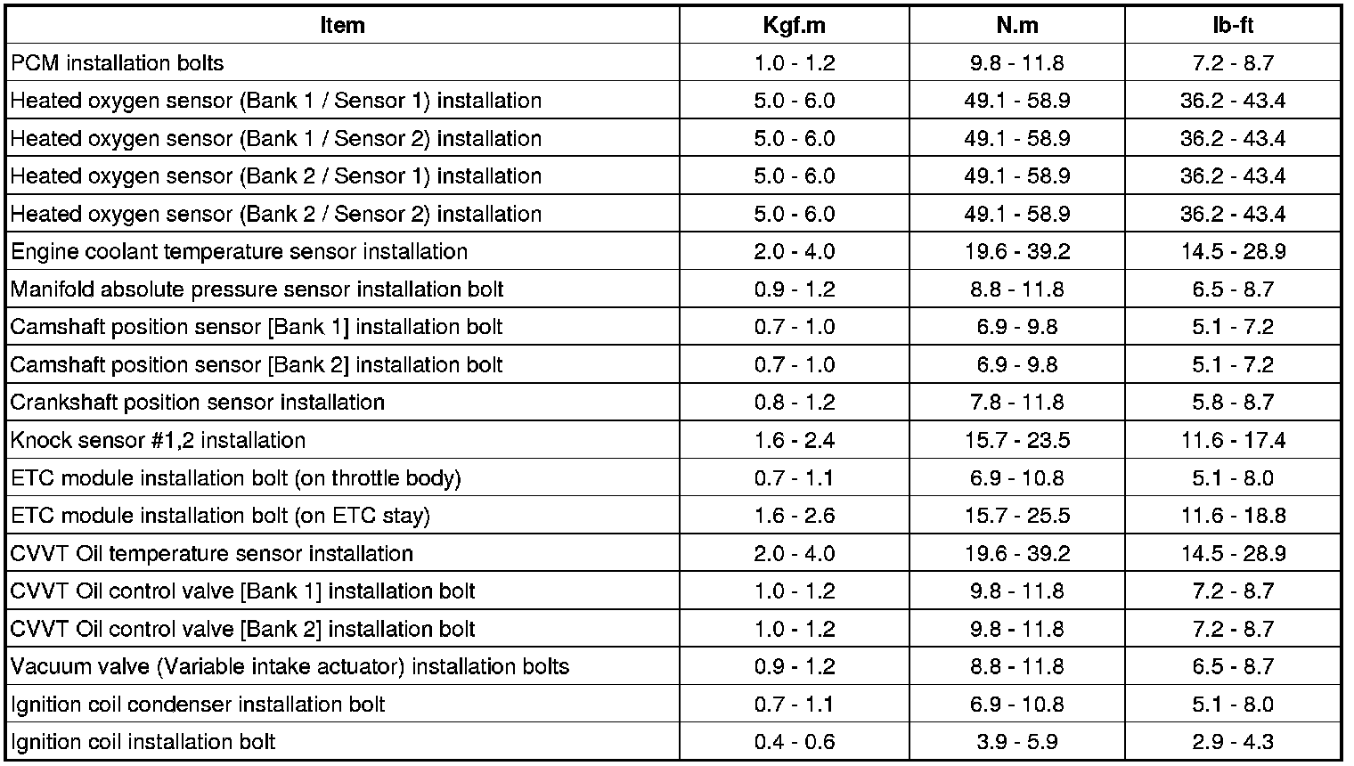 Tightening Torques