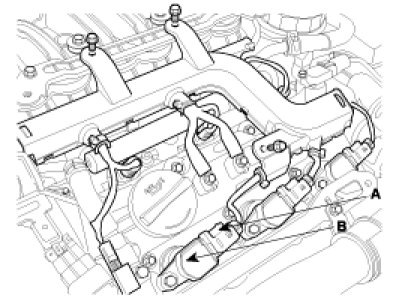 When removing the ignition coil connector, pull the lock pin(A) and push the clip(B).