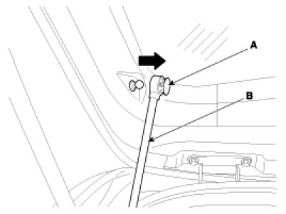 4. Use a small screw driver to loosen clip (A). But do not remove power tailgate push rod (B).