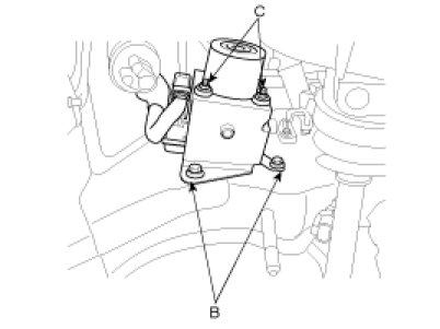 5. Remove the two HECU mounting nuts (C) and washer, and then remove the bracket.