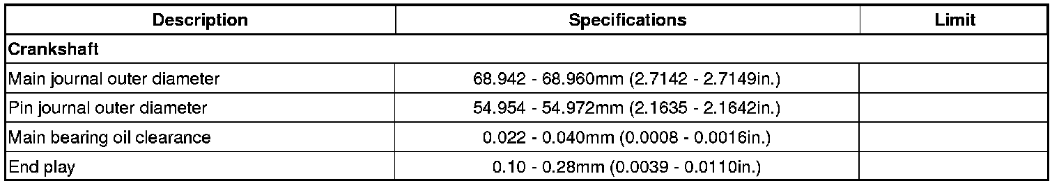 Main journal diameter 68.942 - 68.960 mm (2.7142 - 2.7149 in.)