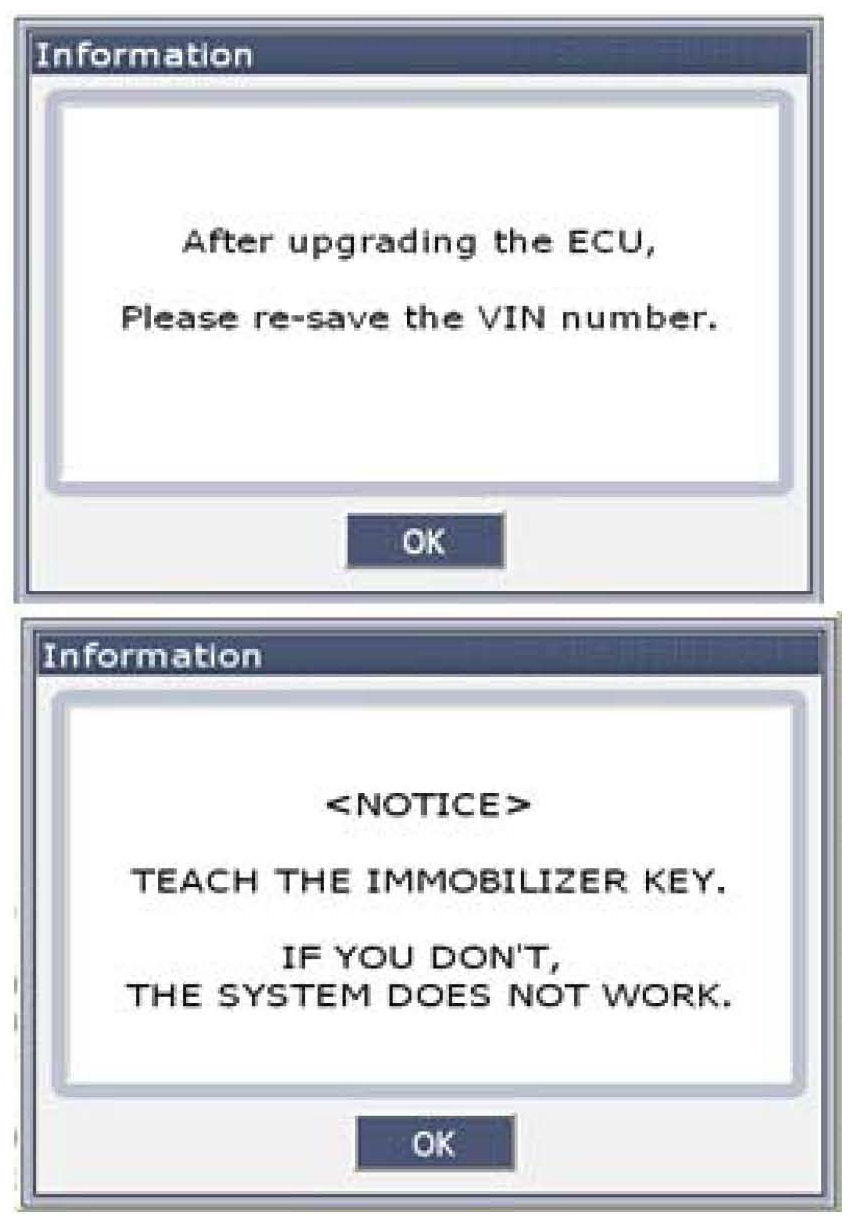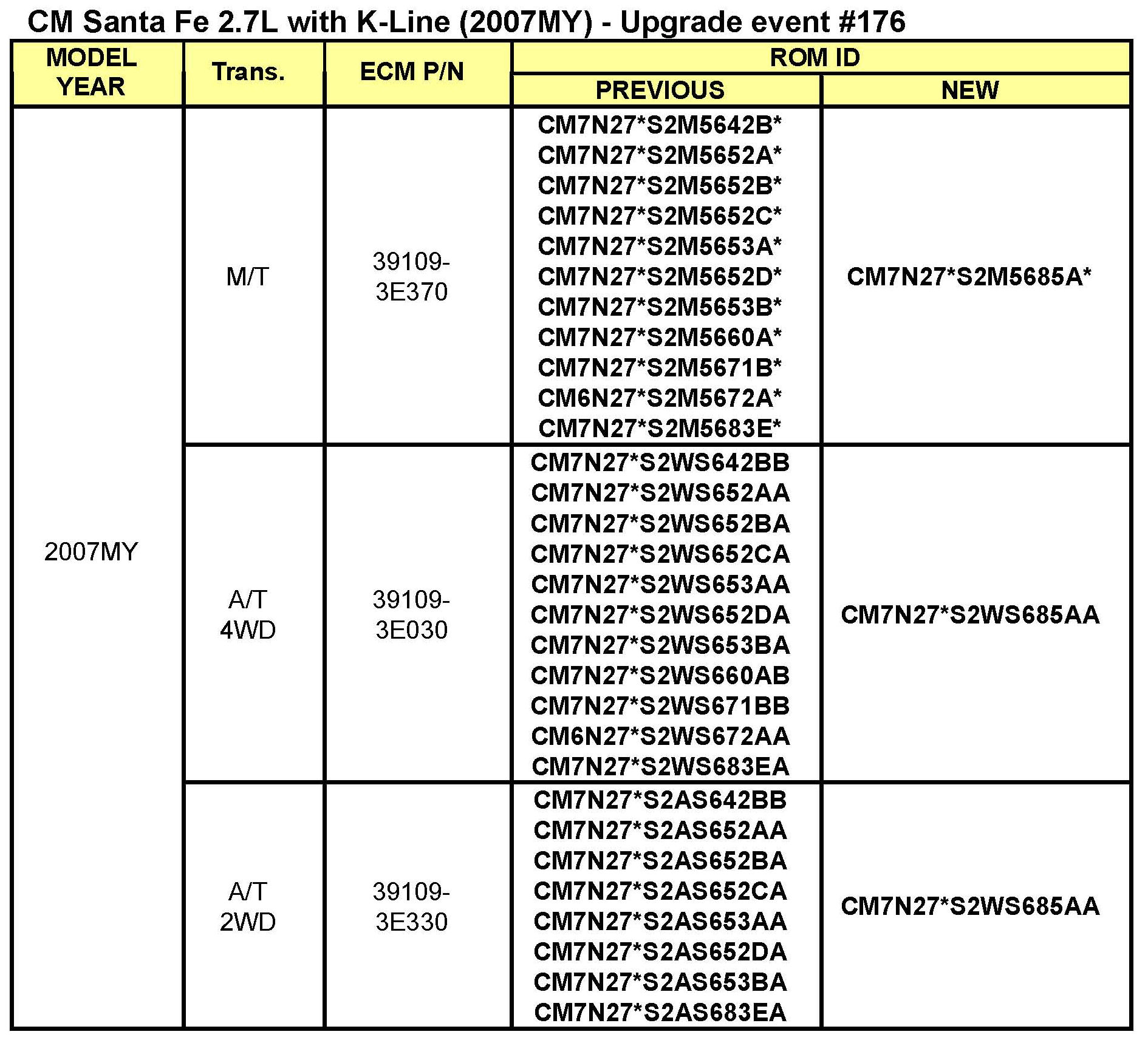 10. For EN Veracruz after update is completed, perform the VIN writing procedure or immobilizer key teaching procedure on the affected vehicles where it is referenced in the "ECM ROM ID INFORMATION "table earlier in this TSB.