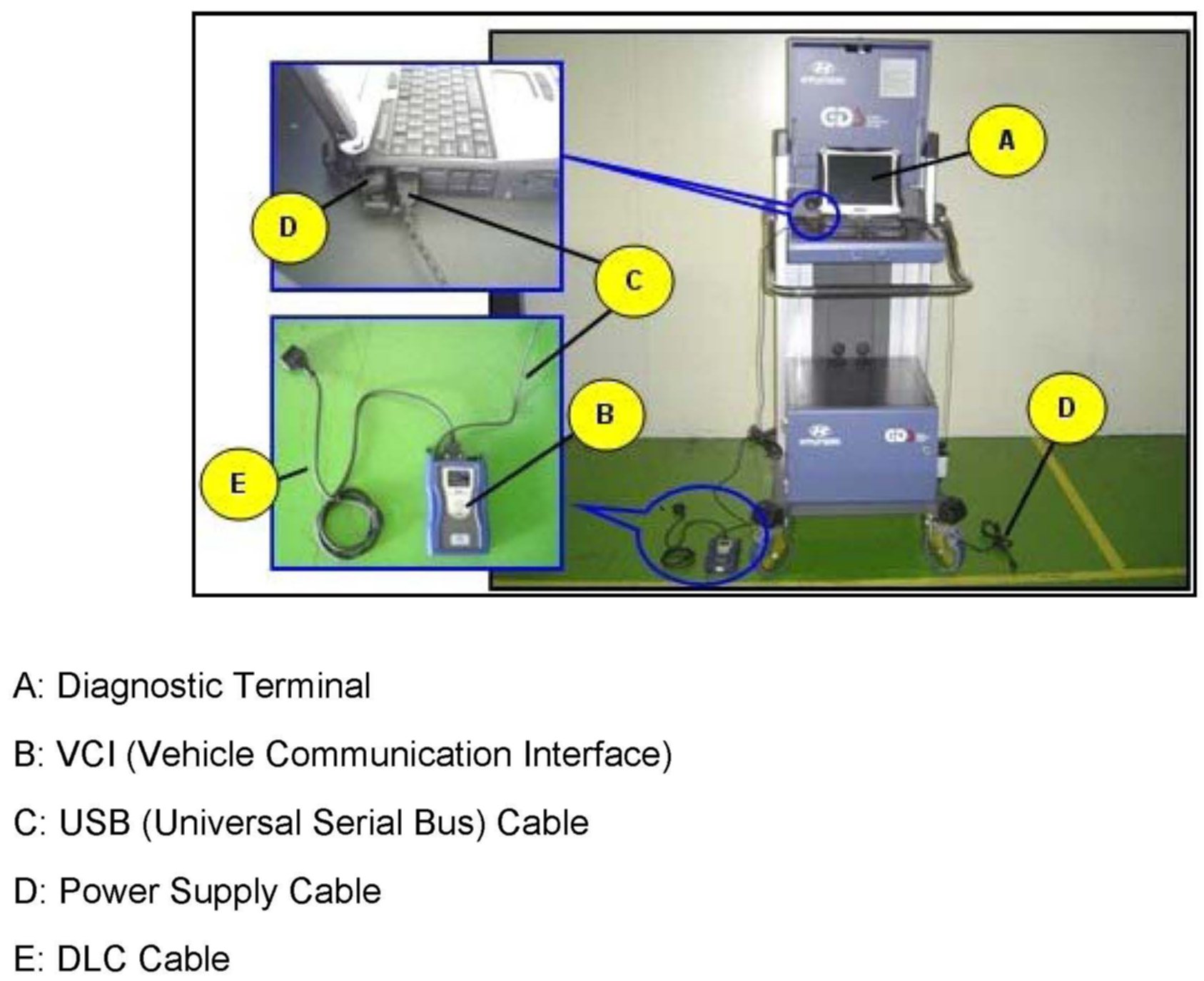 2. Connect the USB cable between the VCI and the diagnostic terminal.
