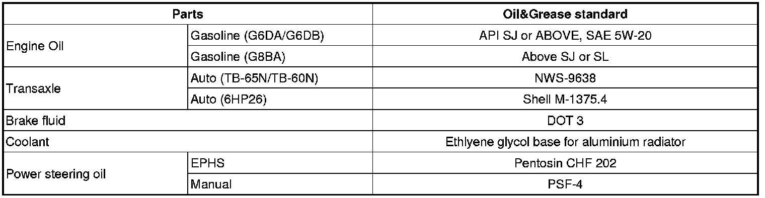 Using any other type of parts and fluid can cause serious damaged if the vehicle.RECOMMENDED LUBRICANTS