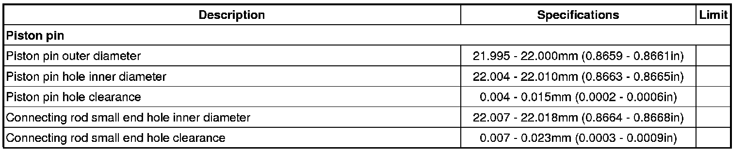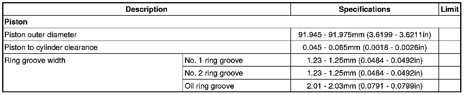 Oil ring 0.06 - 0.15 mm (0.0024 - 0.0059 in)