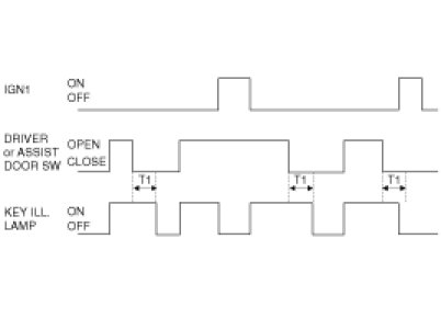 (3) If it is in state of that KEY IN SW is IN & assist's DOOR is OPEN & assist's DOOR UNLOCK SW is LOCK, and after 0.5s, and then perform the ALL DOOR UNLOCK output for 1 second.