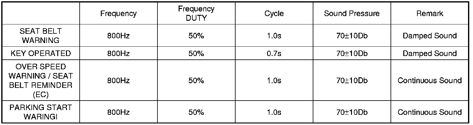 (2) The Priority Order: OVER SPEED WARNING > S/BELT WARNING > KEY OPERATED WARNING > PARKING START WARNING