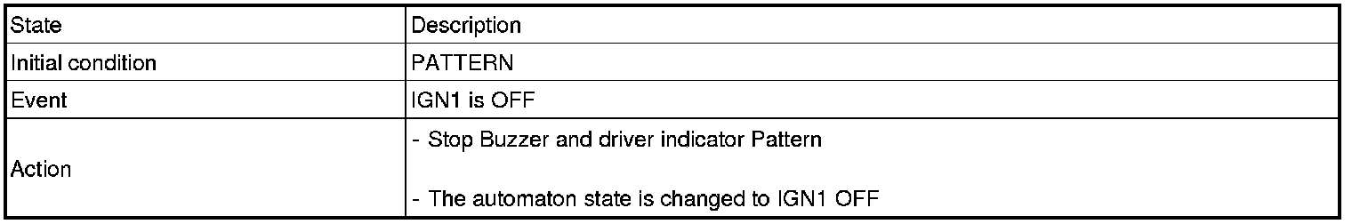 (1) In state of KEY IN SW is IN, if the DRIVER DOOR is opened, then the CHIME BUZZER output shall be continued with the cycle of 0.7 seconds.