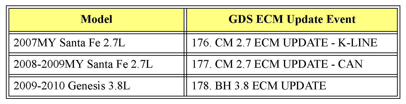 2009-2OIOMY Genesis (BH) 3.8L with CAN communication - Update event # 178: