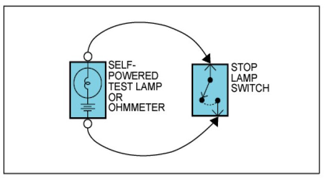 Use a self-powered test lamp or an ohmmeter to check for continuity.