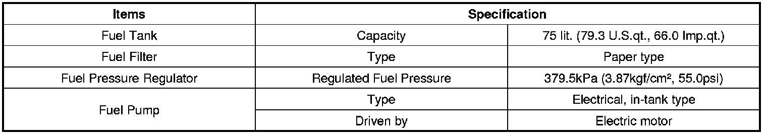 Home >> Hyundai >> 2009 >> Santa Fe AWD V6-2.7L >> Repair and Diagnosis >> Specifications >> Electrical Specifications >> Coolant Temperature Sensor/Switch (For Computer) >> Fuel System - Specifications