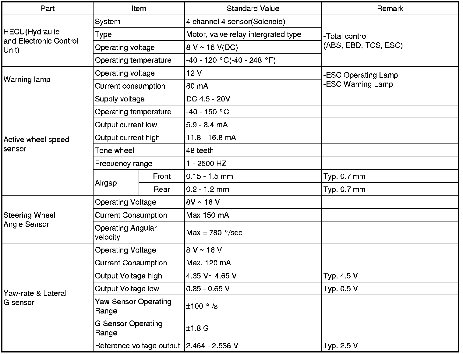 Specification(ESC)