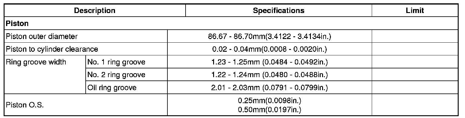 Oil ring 0.20 - 0.70 mm (0.0079 - 0.0275 in.)