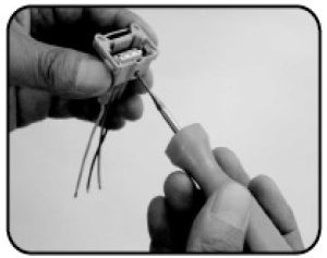 - Double tip type : Removal of double locking male/female terminal from the connector
