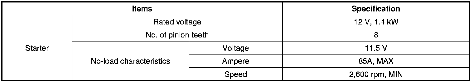 Starting System: Specifications