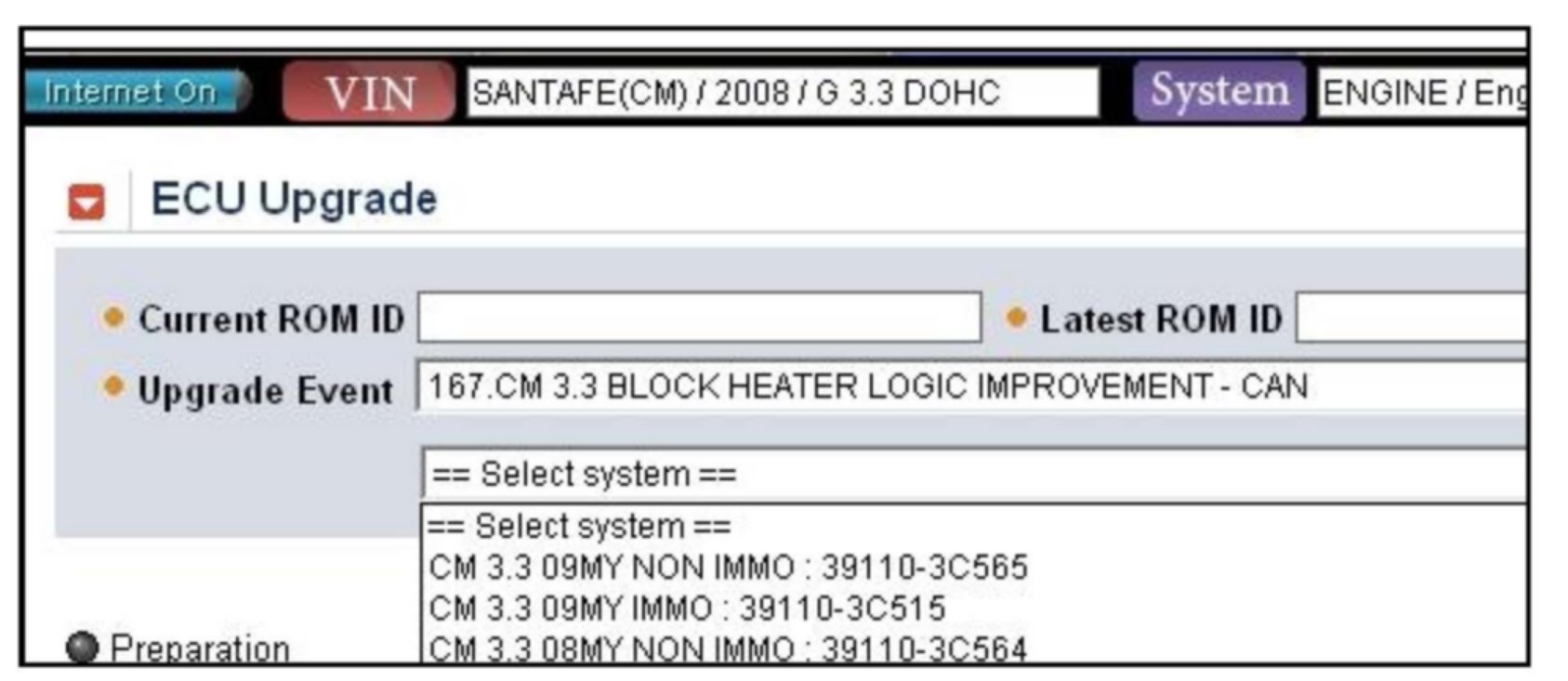 3. Select ECU Upgrade on the initial screen after entering the vehicle information.