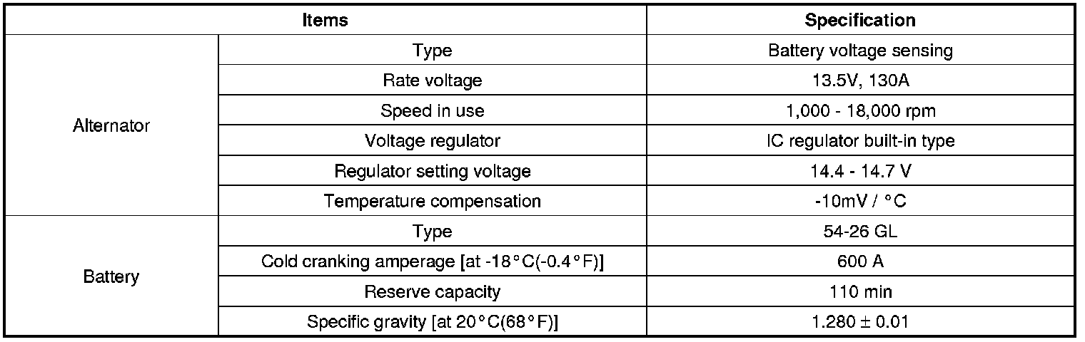 Home >> Hyundai >> 2009 >> Sonata V6-3.3L >> Repair and Diagnosis >> Specifications >> Electrical Specifications >> Charging System >> System Specifications
