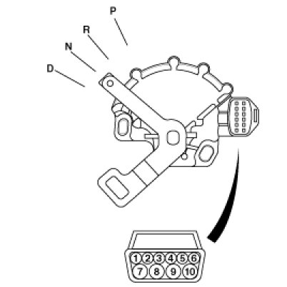9. If there is not continuity between the terminals in the table above for each switch position, replace the inhibitor switch.