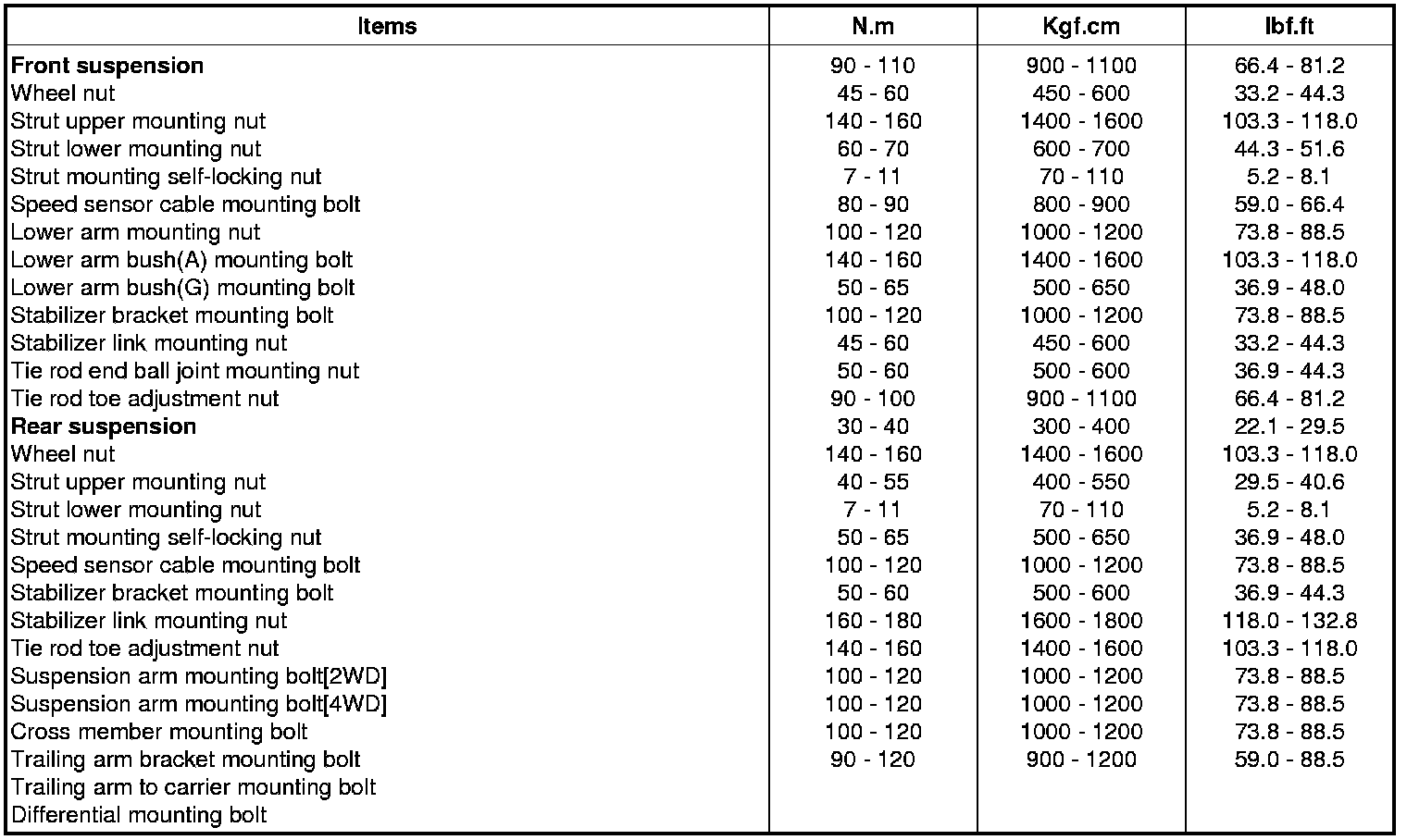 Tightening Torques