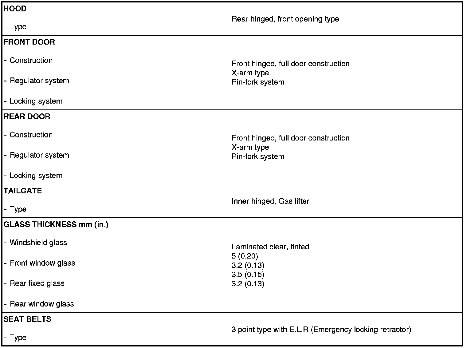 Body and Frame: Specifications