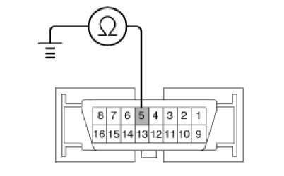 1. Check for continuity between terminal 5 of the data link connector and body ground.