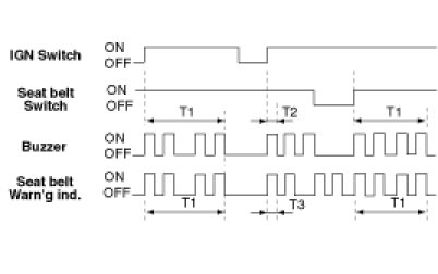 (3) When the ignition is already switched ON, if the seat belt is removed, the warning indicator and the buzzer are output for total time 6 seconds.