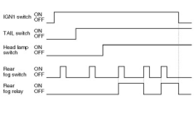 (1) REAR FOG RELAY is turned ON if pushing REAR FOG switch OFF -> ON under HEAD LAMP switch=ON (or FRONT FOG switch=ON) & IGN1=ON & TAIL=ON.