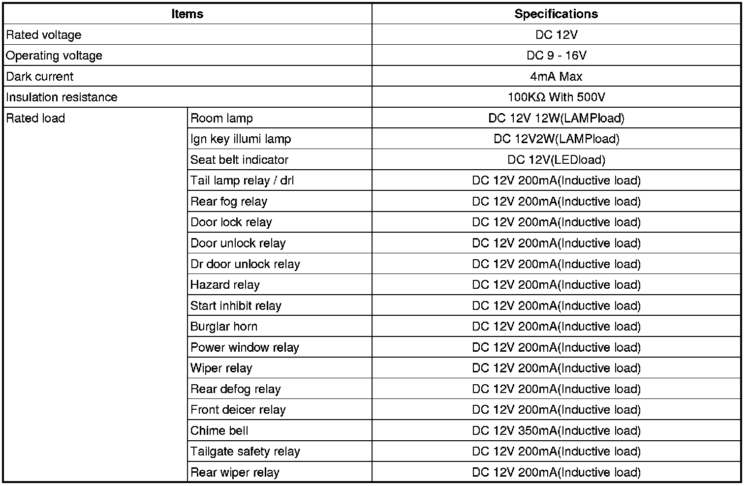Electrical Specifications