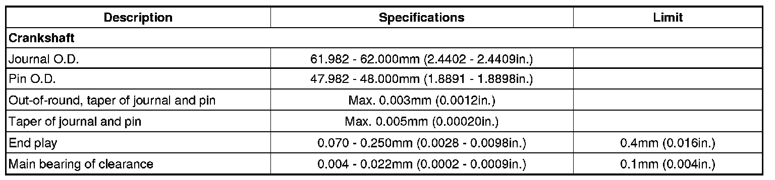 Main journal diameter 61.982 - 62.000 mm (2.4402 - 2.4409 in.)