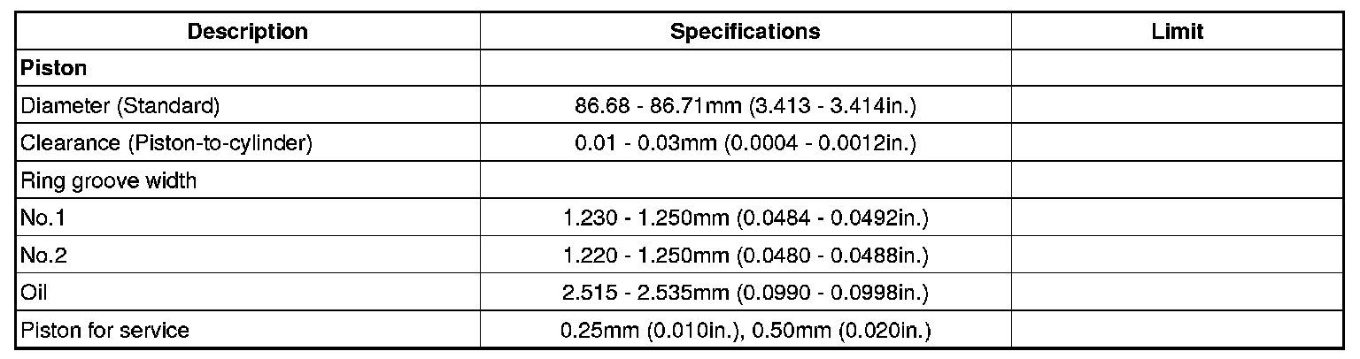 Home >> Hyundai >> 2009 >> Tucson AWD V6-2.7L >> Repair and Diagnosis >> Specifications >> Mechanical Specifications >> Engine >> Cylinder Block Assembly >> System Specifications >> Piston