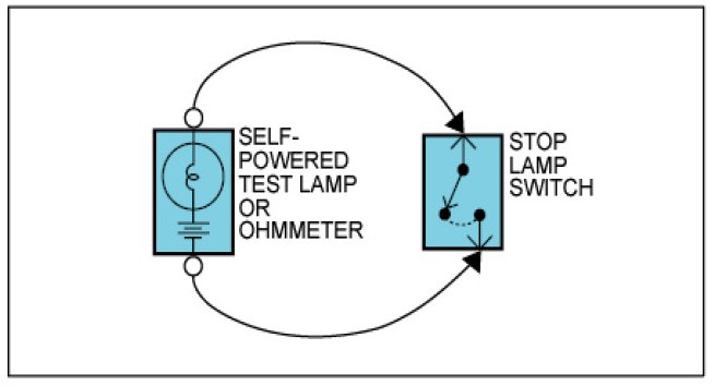 Use a self-powered test lamp or an ohmmeter to check for continuity.