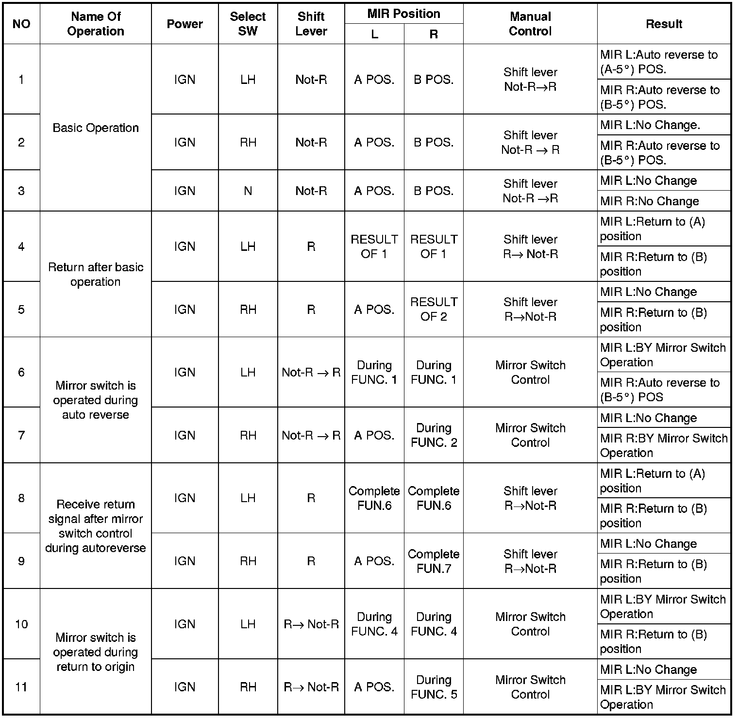 6. OUTSIDE MIRROR DOWN OPERATION AT REVERSING (AUTO REVERSE)