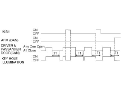 A. (While IGN KEY is inserted into the KEY CYLINDER (*) Or ACC is ON) & (IGN1 = IGN2 = ALT'L = OFF) if DRIVER SIDE DOOR is opened. KEY OPERATED WARN'G starts.